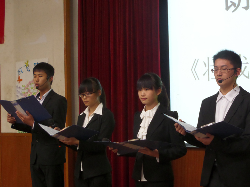 大會(huì)最后,各班級(jí)進(jìn)行宣誓,宣誓聲響徹全場(chǎng),振奮人心。團(tuán)委書(shū)記王軍成老師對(duì)此次觀摩團(tuán)會(huì)進(jìn)行點(diǎn)評(píng):本次團(tuán)會(huì)主題明確,富有特色,準(zhǔn)備得當(dāng),是千錘百煉出來(lái)的精品,他對(duì)承辦方的努力給予了肯定;同時(shí)王老師還希望,像類似的團(tuán)會(huì)應(yīng)該在各個(gè)班級(jí)積極開(kāi)展,讓每個(gè)同學(xué)都了解核心價(jià)值觀、踐行核心價(jià)值觀,傳承中華傳統(tǒng)美德,更好地促進(jìn)班級(jí)團(tuán)結(jié),共同奮斗。