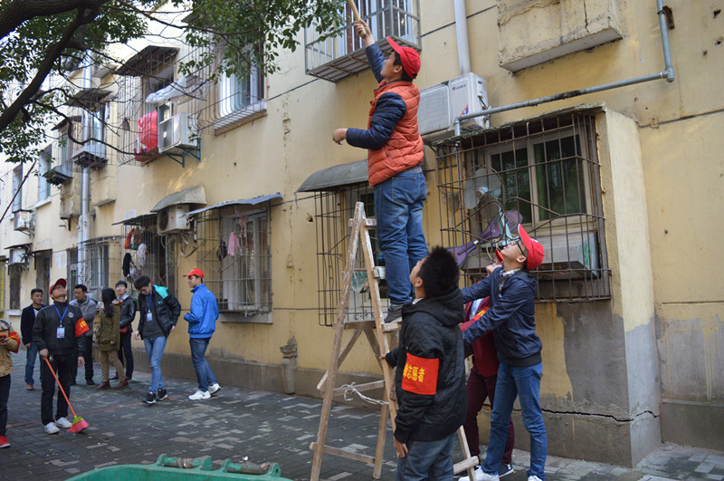 3月12日,下午3點(diǎn)10分,信息與電子學(xué)部?jī)晌瘯?huì)20余名學(xué)生干部在危彥明老師的帶領(lǐng)下,來(lái)到了上海路社區(qū),在上海路南社區(qū)廖主任地陪同下領(lǐng)取掃帚、竹竿、刀片等物品,進(jìn)行清潔活動(dòng)。志愿者們?cè)诘缆穬膳裕瑯渖疑希块苌暇鍜呦铝舜罅坷T谶@期間,有不少居民上前詢問(wèn),并對(duì)此次活動(dòng)大加贊賞。