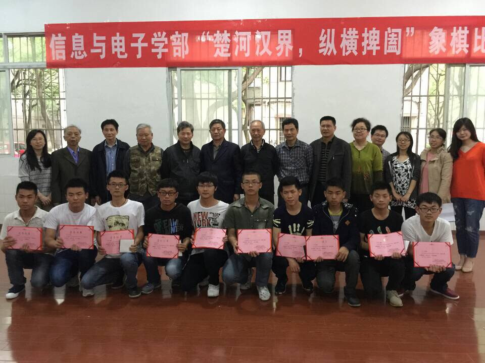 2015年4月27日,信息與電子學部聯(lián)合校離退休處舉辦的“楚河漢界,縱橫捭闔”象棋比賽決賽在我院教職工離退休活動中心舉行。離退休處處長應保銀,科技學院黨委副書記、副院長江天光,離退休處象棋分會會長周順心、信息與電子學部黨總支書記劉利萍等出席了決賽。