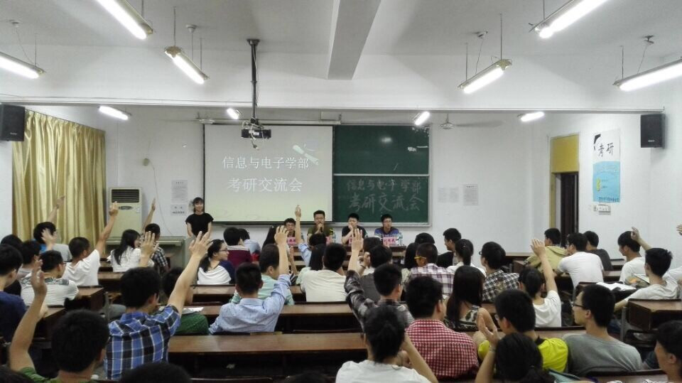 為了進一步提高同學(xué)們的考研熱情,增強同學(xué)們對考研知識的了解,信息與電子學(xué)部于5月7日晚6點30分,在8413教室舉行考研交流會。本次交流會特意為大家請來了我學(xué)部在考研中取得優(yōu)秀成績的四位代表,他們將針對考研問題為同學(xué)們答疑解惑。