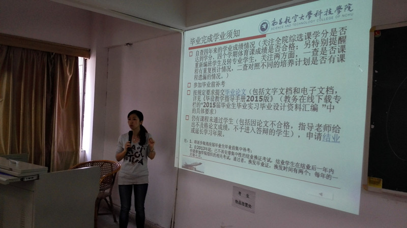 為了讓2015屆畢業(yè)生對論文材料的提交以及答辯做得更好,順利辦理離校各項手續(xù),做到安全文明離校。5月19日,文學與藝術(shù)學部組織畢業(yè)生在8301教室召開畢業(yè)生返校見面會,見面會由學部辦公室主任黃衛(wèi)主持,學部主任陳利卿、黨總支書記何宇、學部各系主任,畢業(yè)班全體輔導員以及116名畢業(yè)生參加了見面會。