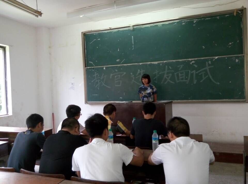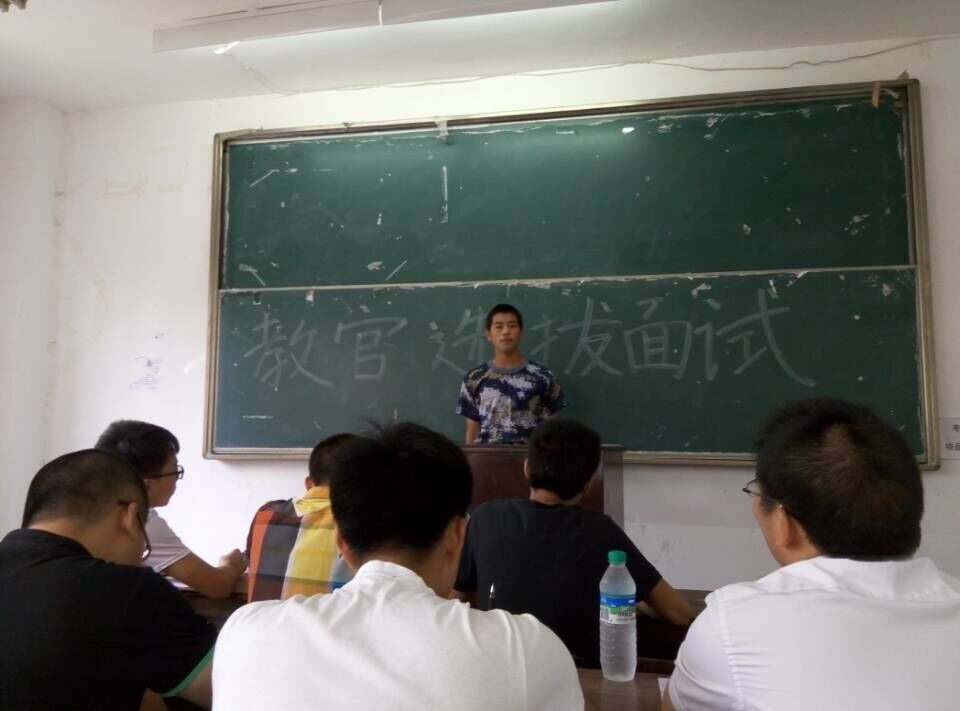 6月17日上午8時30分,機械與材料學部教官選拔面試在8207教室舉行。機械與材料學部黨總支書記曾林、辦公室主任潘朝輝、團總支書記熊弢,輔導員代表喻生華 、李楨,12級教官代表鄭玉亮,13級教官代表余磊和兩委會主席團代表徐祥、黎國平、林茂生為本次面試的面試官。36名學員參加本次面試。