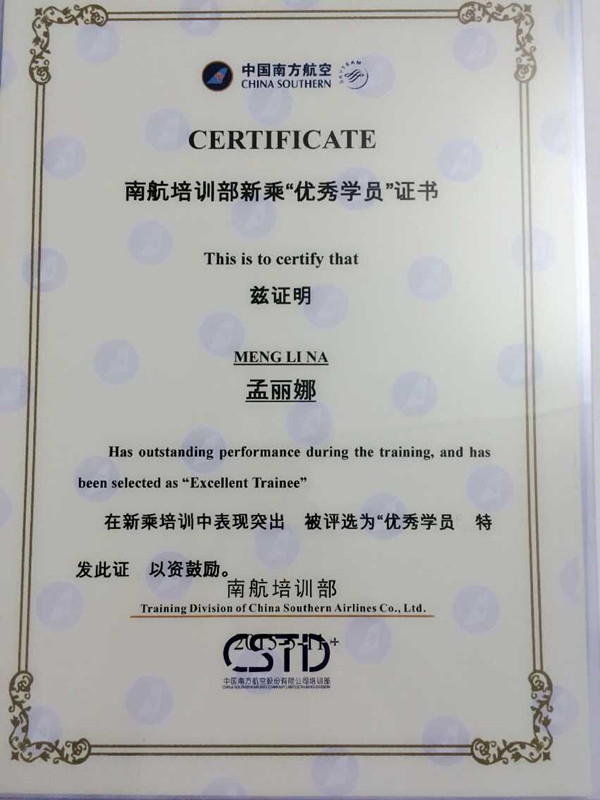 在英語學(xué)習(xí)上的努力只是她為理想所付出努力的一個縮影,她更多的是不斷給自己信心重新?lián)P帆起航,堅持再堅持,努力更努力。所以她用努力等來了果實,她成功面試南方航空公司,并于2015年3月順利參加培訓(xùn),培訓(xùn)中表現(xiàn)優(yōu)異,被評為"優(yōu)秀學(xué)員",現(xiàn)工作于南方航空公司北京分公司。中國南方航空股份有限公司(簡稱南航)是國內(nèi)運輸航班最多、航線網(wǎng)絡(luò)最密集、年客運量亞洲最大的航空公司南航與中國國際航空股份有限公司和中國東方航空股份有限公司合稱中國三大航空集團(tuán)。中國南方航空股份有限公司稟承“客戶至上”的承諾,通過提供“可靠、準(zhǔn)點、便捷”的優(yōu)質(zhì)服務(wù),致力滿足并超越客戶的期望。工作之后的她經(jīng)常與我聊起她的感悟:在服務(wù)方面我認(rèn)為乘務(wù)員為旅客提供服務(wù),實際上是一種人與人之間的溝通、交往的人際關(guān)系。做好服務(wù)工作的基礎(chǔ)在于了解旅客心理,關(guān)心旅客,熱愛旅客。做到眼勤、嘴勤、手勤、腿勤,盡量滿足旅客提出的要求,讓旅客真正有賓至如歸的感覺。