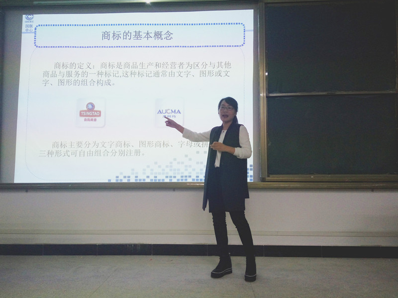 李灑老師圍繞知識產(chǎn)權(quán)的定義展開敘述,點明商標(biāo)注冊的重要性及益處,列舉了各類專利權(quán),并繪制了江西高校專利申請圖表,使數(shù)據(jù)信息更加清晰明了。