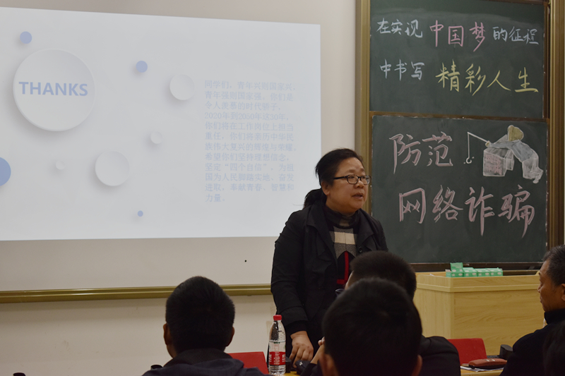 此次主題班會由各班代表主持,就杜絕校園借貸與防范網(wǎng)絡(luò)詐騙展開了一系列的介紹,展示了全國一些典型校園網(wǎng)貸案例。同時班會過程中播放了一些關(guān)于網(wǎng)貸危險的報導(dǎo),直接指出網(wǎng)絡(luò)貸款的“陷阱”,告誡同學(xué)們提高警惕,防止被騙。同學(xué)們也通過自導(dǎo)自演的小品折射出校園網(wǎng)貸的危險,以及合理消費,堅決抵制校園網(wǎng)貸的必要性。輔導(dǎo)員張瑋娜老師也通過自身經(jīng)歷對校園網(wǎng)貸的弊端以及如何抵制和避免校園網(wǎng)貸進行了介紹。 劉利萍書記也在班會的尾聲做出了總結(jié),提出現(xiàn)在社會上網(wǎng)絡(luò)詐騙無孔不入,同學(xué)們的三觀也還處于完善中的狀態(tài),在一些涉及金錢的問題上并不能很好的處理,所以同學(xué)們在校應(yīng)保管好自身身份信息。