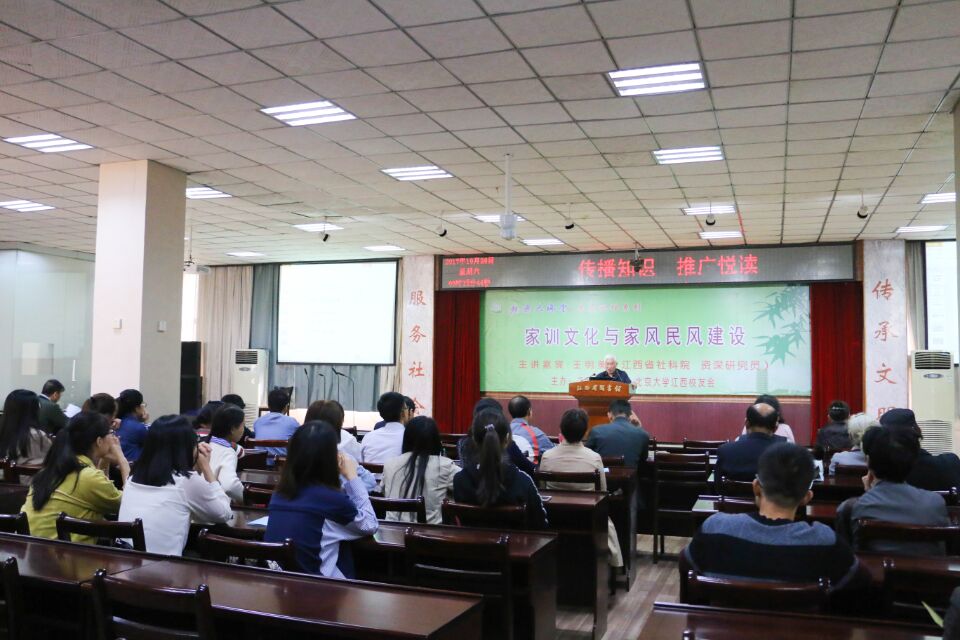 緊接著,一行人便前往報告廳聆聽“家訓(xùn)文化和家風(fēng)民風(fēng)建設(shè)”講座,主講人王明美教授用他激情滿滿的演說感染了在場的所有人,她說到,家訓(xùn)是家庭的核心價值觀,家規(guī)是家庭的“基本法”,家風(fēng)是家族子孫代代恪守家訓(xùn)、家規(guī)而長期形成的具有鮮明家族特征的家庭文化,是每個家庭成員“三觀”的基石,它融化在每一位家庭成員血液中的氣質(zhì),是沉淀在骨髓里的品格,是我們立世做人的風(fēng)范,是工作和生活的格調(diào),是民風(fēng)、社風(fēng)的根基,也是社會和諧的基礎(chǔ)。黨員干部的家風(fēng)更是與黨風(fēng)緊密相連,正如習(xí)近平同志在十八屆中央紀委六次全會上強調(diào)的那樣:“每一位領(lǐng)導(dǎo)干部都要把家風(fēng)建設(shè)擺在重要位置,廉潔修身、廉潔齊家,在管好自己的同時,嚴格要求配偶、子女和身邊工作人員。”