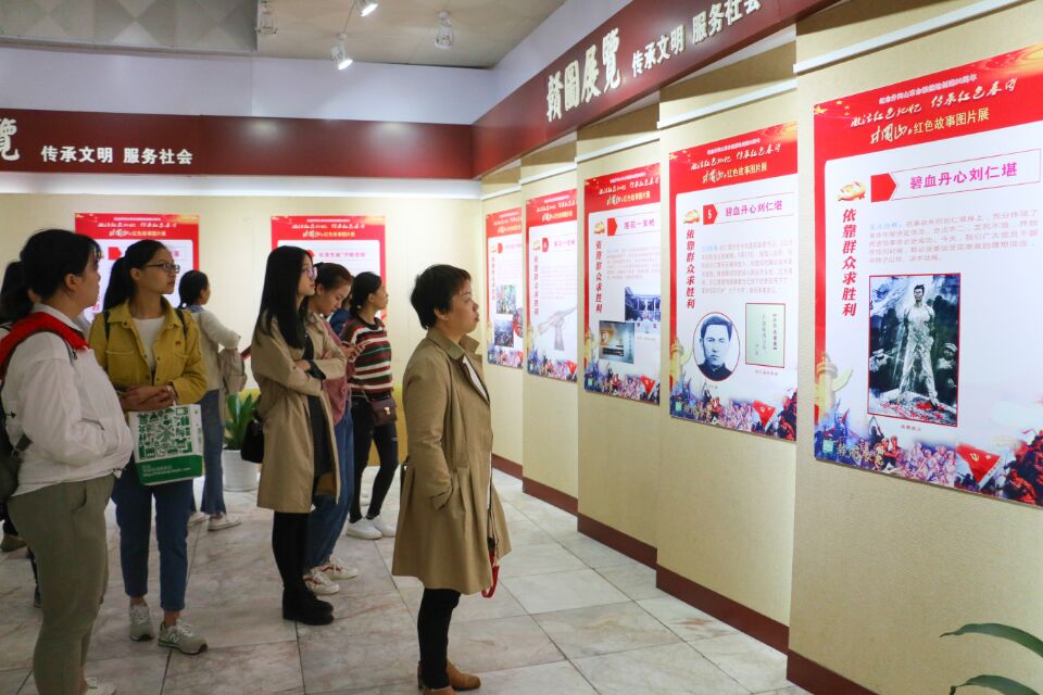 抵達目的地后,第一站就是參觀圖書館中的“井岡山紅色故事圖片展”,圖片內(nèi)容從不同側(cè)面、不同角度生動地講述了毛澤東同志和中國共產(chǎn)黨創(chuàng)建井岡山革命根據(jù)地、開辟井岡山革命道路過程中的革命故事,大家在一幅幅圖片中重溫井岡山時期的烽火歲月,深切感受到了來之不易的革命成果,深刻得體會到了革命前輩們在困難時期展現(xiàn)出的“胸懷理想,堅定信念”的井岡山精神精髓。