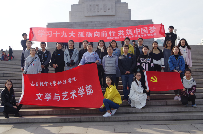 在老師的帶領(lǐng)下,文學(xué)與藝術(shù)學(xué)部學(xué)生黨員們一行首先來(lái)到八一廣場(chǎng)參觀緬懷八一起義紀(jì)念碑。在被譽(yù)為英雄城的城徽下,面對(duì)葉劍英元帥題寫(xiě)的"八一南昌起義紀(jì)念塔"九個(gè)鎏金大字,張老師為學(xué)生黨員們做了動(dòng)員講話,張老師表示,希望各位黨員同學(xué),能夠珍惜出來(lái)學(xué)習(xí)的機(jī)會(huì),錘煉自己的黨性修養(yǎng),通過(guò)學(xué)習(xí),把自己的內(nèi)心感觸同今后學(xué)習(xí)生活結(jié)合起來(lái),切實(shí)履行黨員義務(wù),理論聯(lián)系實(shí)際,不忘初心,樹(shù)立榜樣作用。看著莊嚴(yán)肅穆的塔身,全體學(xué)生黨員肅然起敬,晴朗的八一廣場(chǎng)上空,碑頂?shù)臐h陽(yáng)造步槍?zhuān)艘卉娖欤该髁藢W(xué)生黨員們未來(lái)的路,進(jìn)一步堅(jiān)定理想信念,團(tuán)結(jié)在以習(xí)近平同志為核心的黨中央。