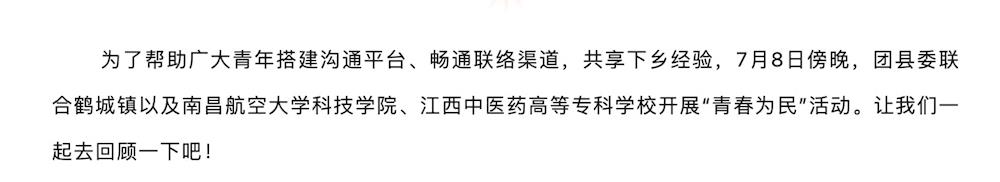 《資溪團(tuán)縣委》:【青春三下鄉(xiāng)】共青團(tuán)資溪縣委與鶴城鎮(zhèn)人民政府聯(lián)合院校開展暑期三下鄉(xiāng)社會(huì)實(shí)踐活動(dòng)