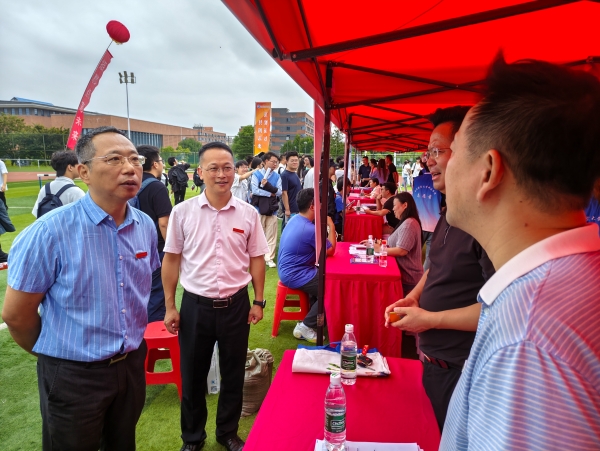學(xué)院領(lǐng)導(dǎo)來到雙選會(huì)現(xiàn)場(chǎng),與畢業(yè)生及企業(yè)代表親切交流。院長(zhǎng)李冰穎、黨委書記鄧洪峰走進(jìn)學(xué)生中間,細(xì)致詢問每位同學(xué)的求職意向、崗位選擇與面試進(jìn)展,鼓勵(lì)大家結(jié)合專業(yè)優(yōu)勢(shì)與職業(yè)發(fā)展方向,理性抉擇,主動(dòng)出擊,與心儀的用人單位進(jìn)行積極高效的溝通,同時(shí)勉勵(lì)畢業(yè)生們樹立“先就業(yè)、再擇業(yè)”的務(wù)實(shí)觀念,發(fā)揚(yáng)實(shí)干精神,立足本職崗位成長(zhǎng)成才,在服務(wù)國(guó)家與社會(huì)發(fā)展的過程中實(shí)現(xiàn)個(gè)人理想和價(jià)值。